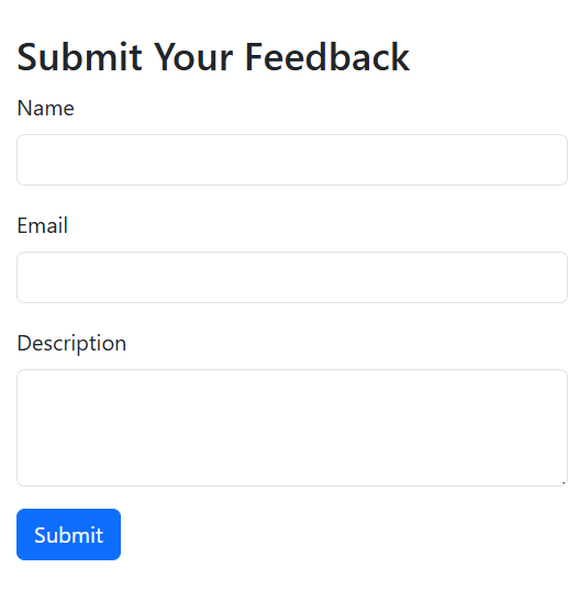 - Bootstrap Form Creation: Set up a form with input fields for name, email, and description.